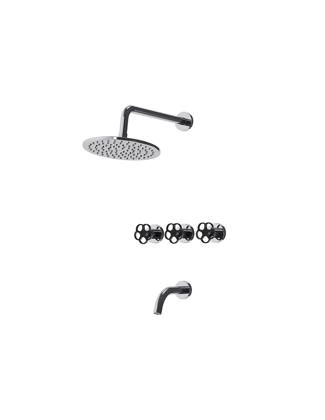 Blumé Ducha De Embutir Bimando Con Flor De Ducha Y Lavapies Negro Y Cromo