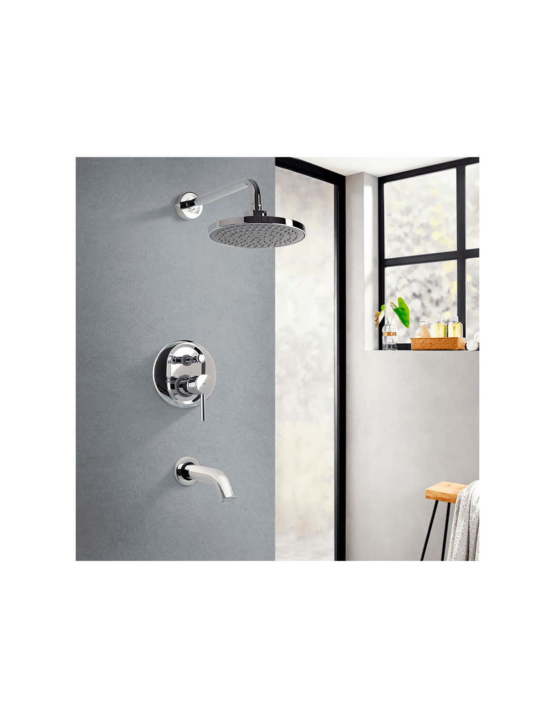 Lyra - Juego cromo monocomando para ducha de embutir de baño.