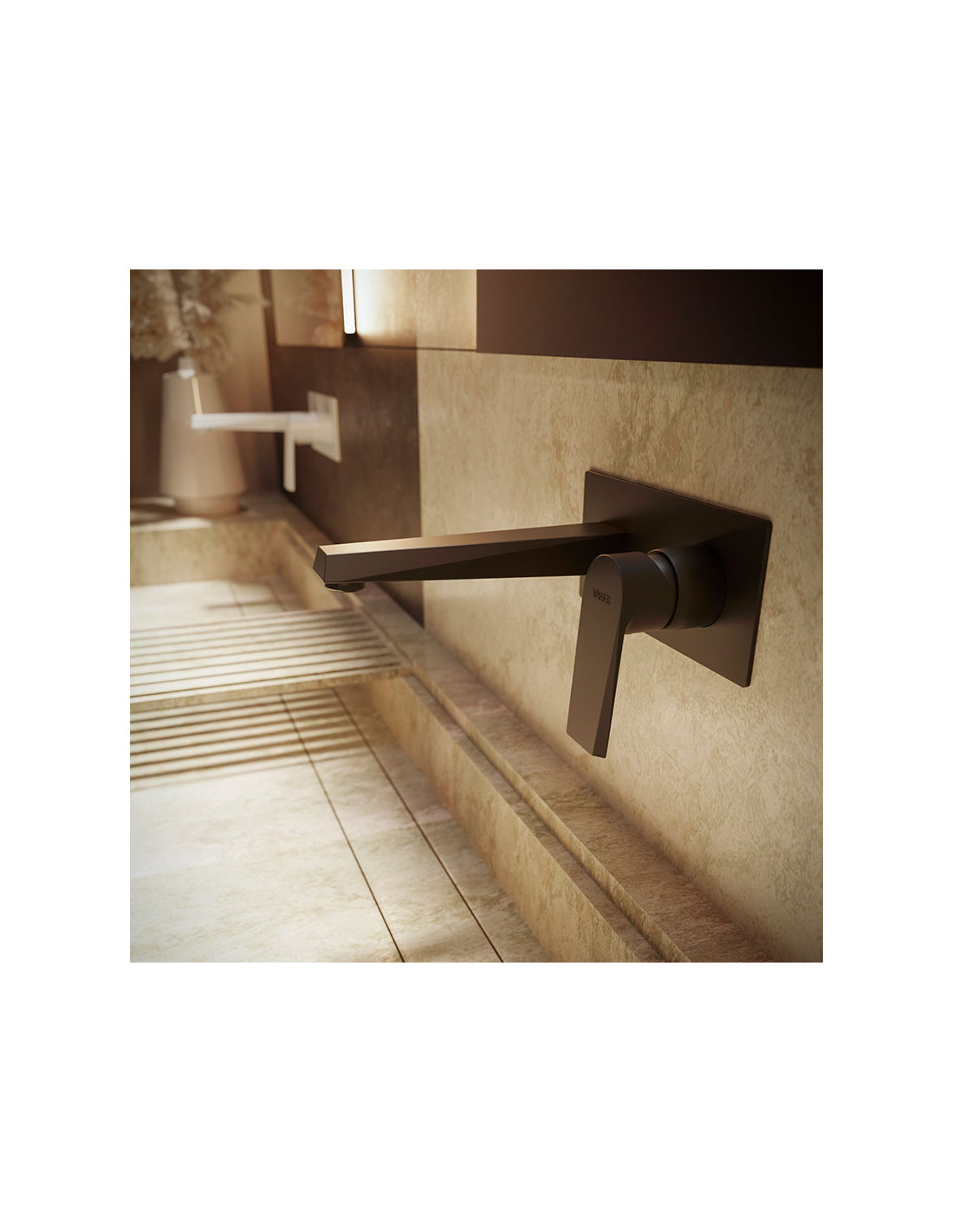 Zafiro - Juego negro monocomando para pared de lavatorio de baño.