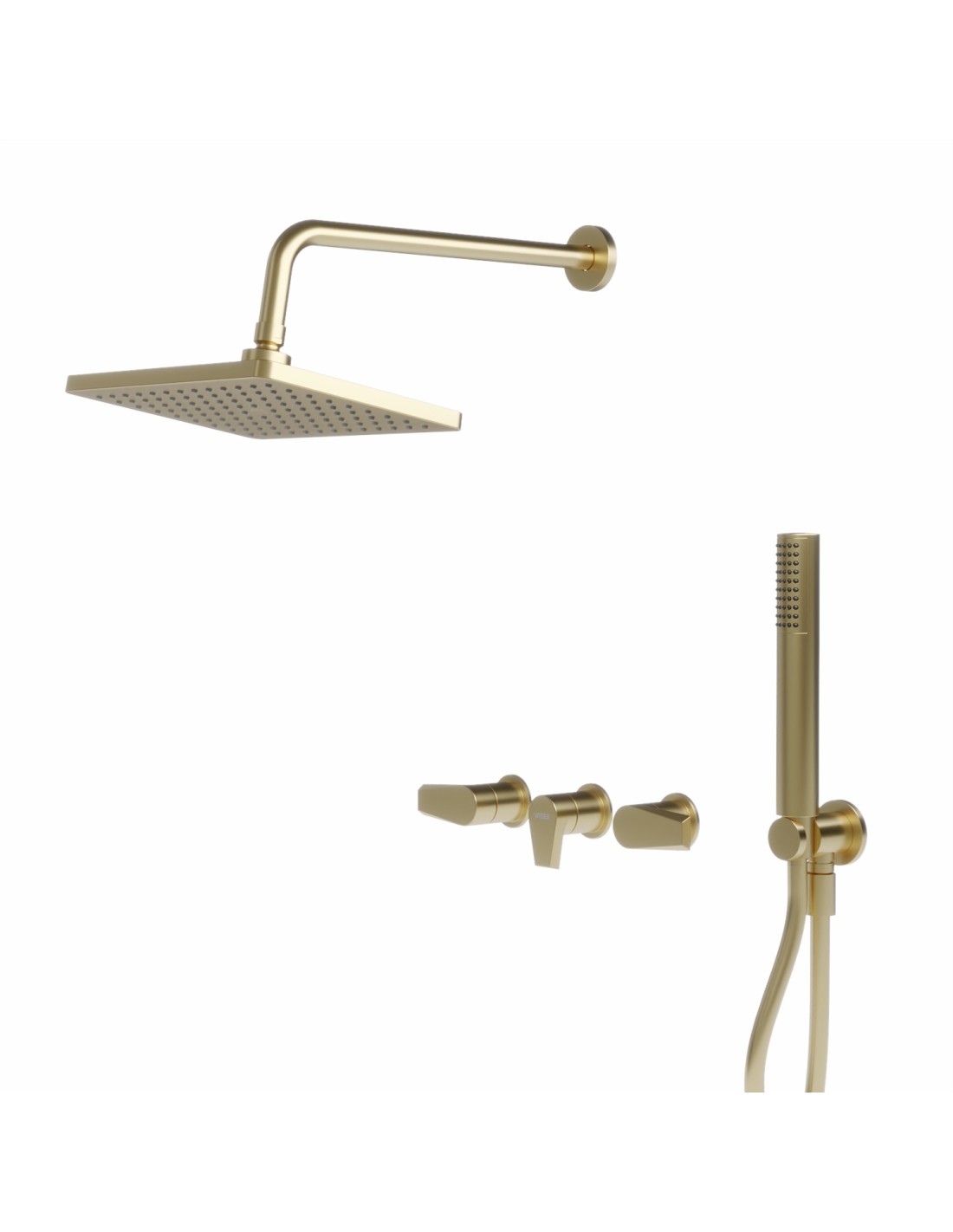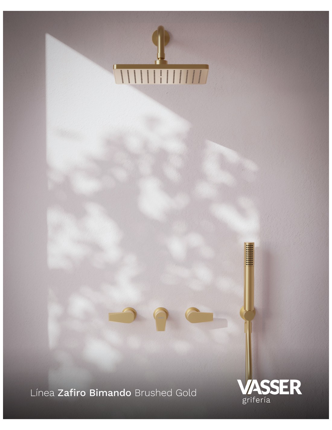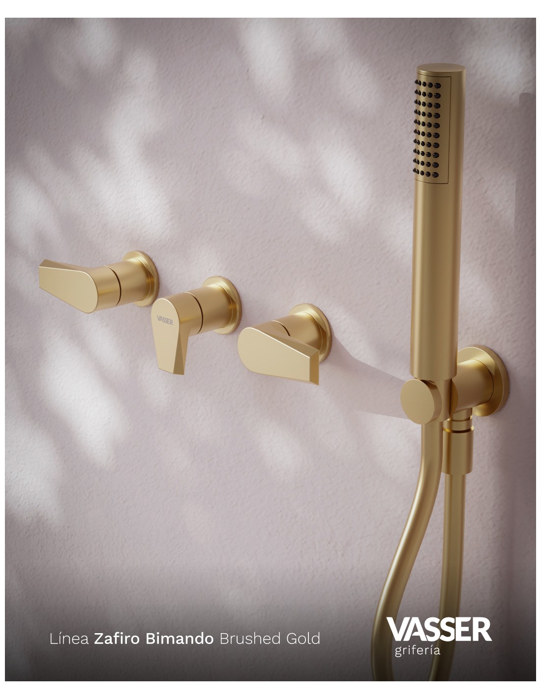 Zafiro Ducha De Embutir Bimando Con Flor De Ducha Y Duchador Manual Dorado